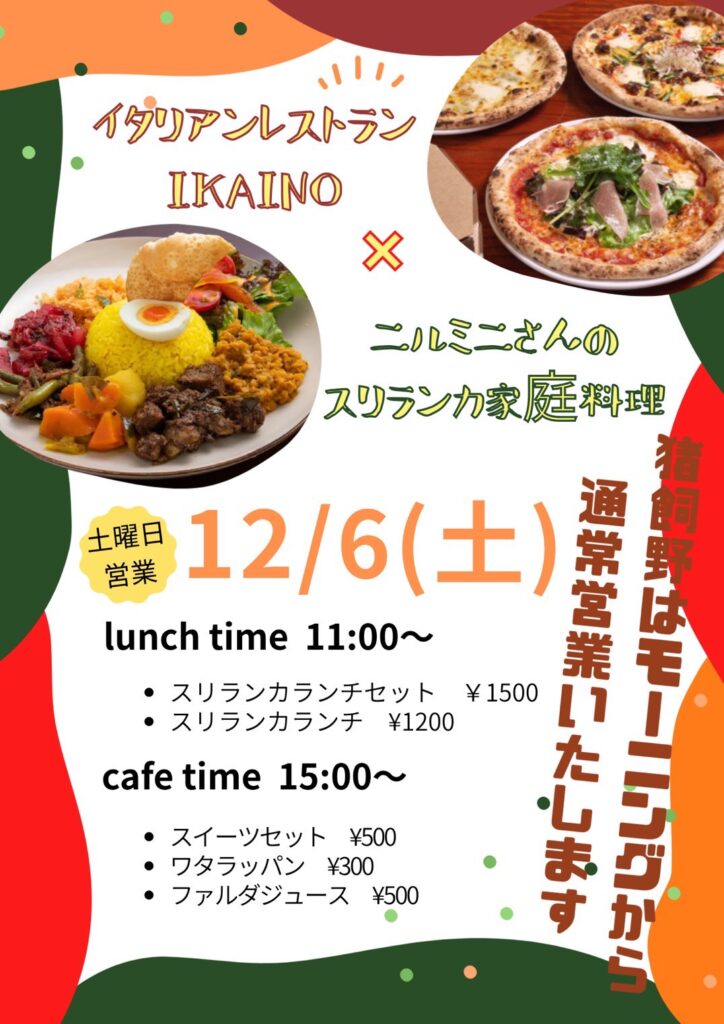 この日は【ニルミニさんのスリランカ家庭料理】とコラボ営業になります✨
